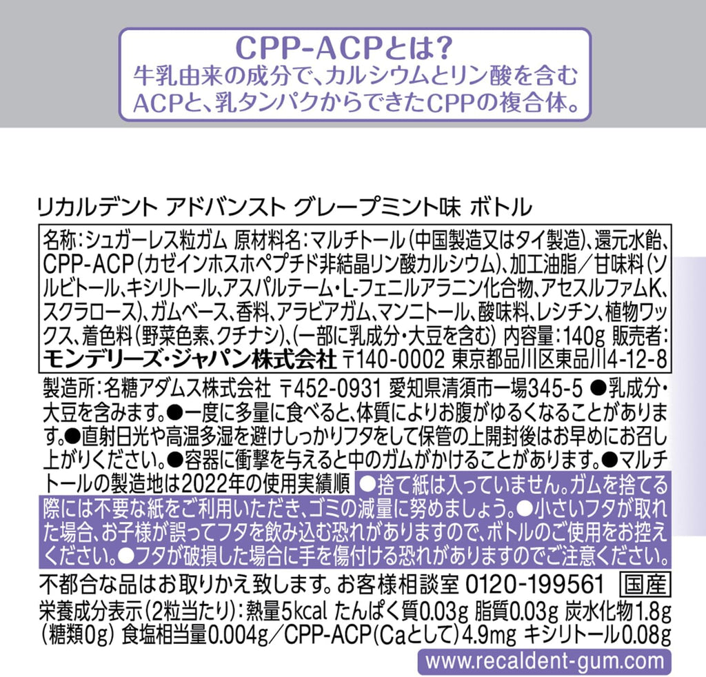 Recaldent Advanced Grape Mint Gum Bottle type 140g Mondelez Japan