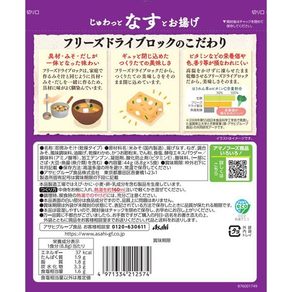 Eggplant Instant Miso Soup freeze-dried type 5 cups Amano foods
