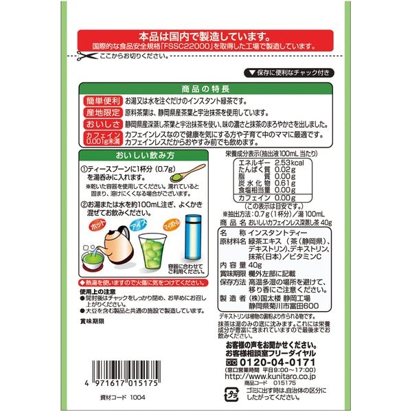 Caffeine-less Deep steamed Green Tea Powder 40g Kunitaro