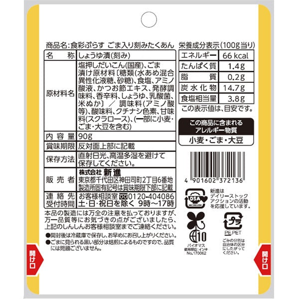 This is chopped takuan made from shredded domestic radish marinated in fragrant roasted sesame and a sweet seasoning.