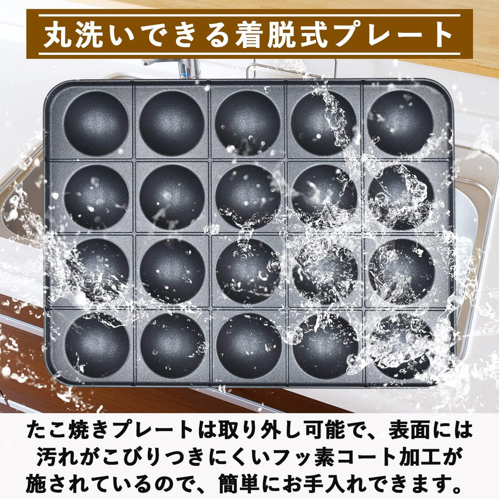 It can cook up to 20 takoyaki at a time, making it perfect for home parties with family and friends.