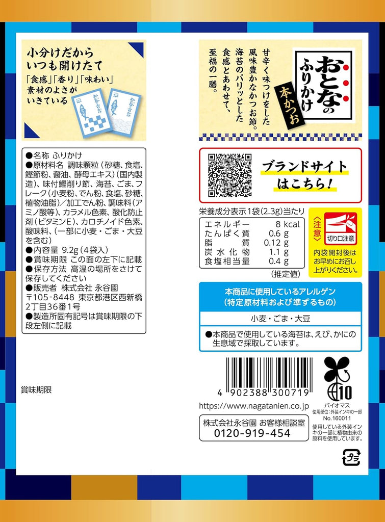 Tempero para Arroz Otonano Furikake Sabor Bonito Seco 5 porções Nagatanien