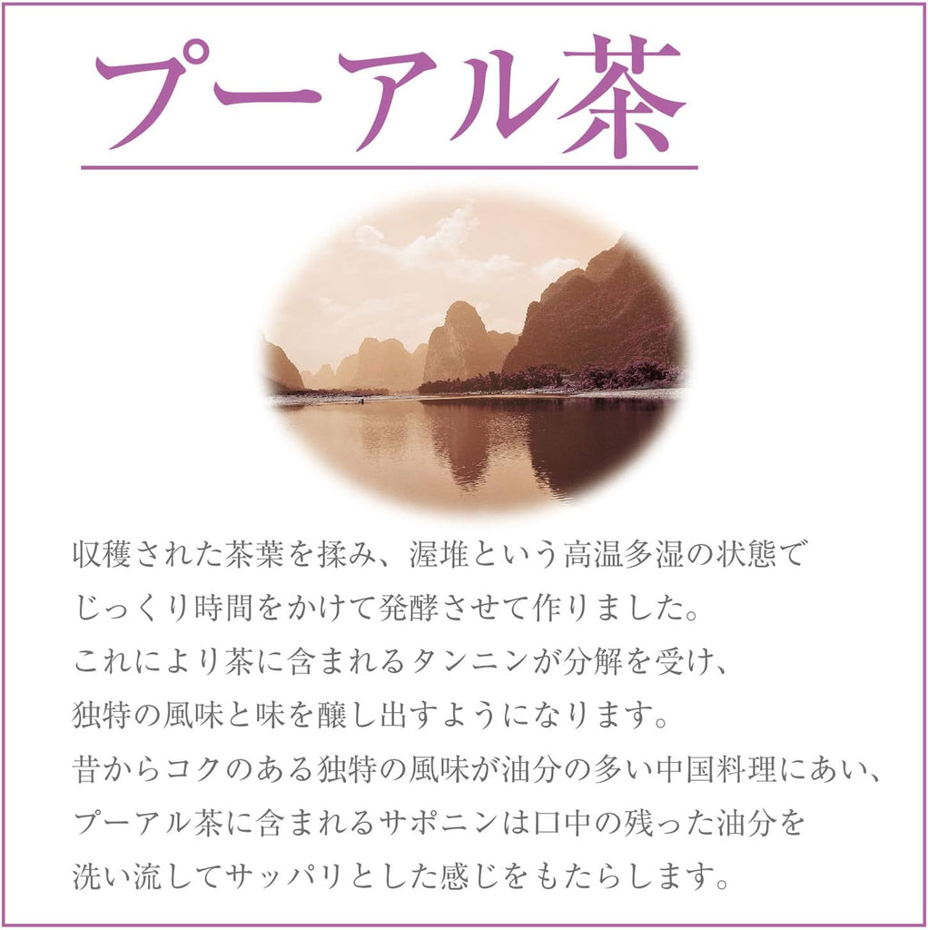 Made with 100% carefully selected Pu'er tea.
